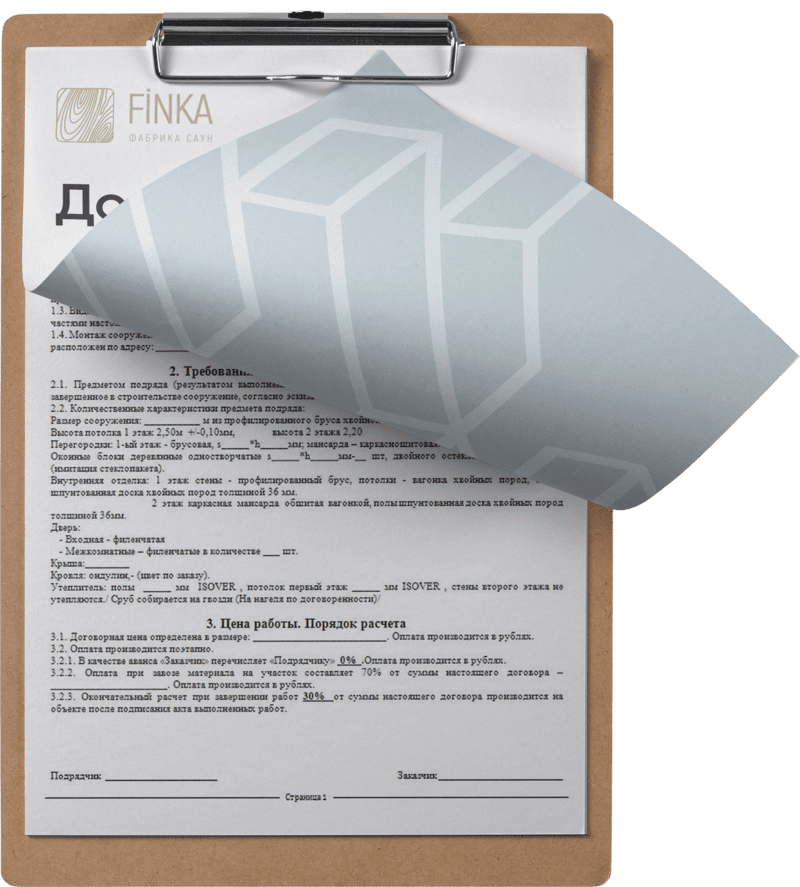 Вы защищены тройной гарантией по договору Доверяя "Finka" вы будете спокойны за качество и сроки реализации проекта.