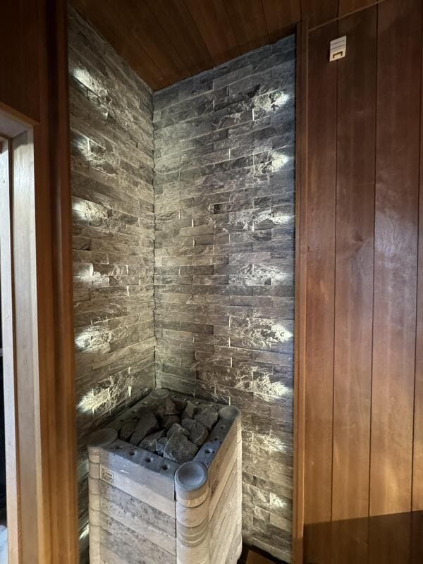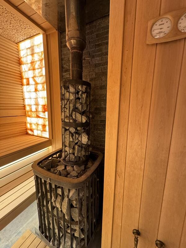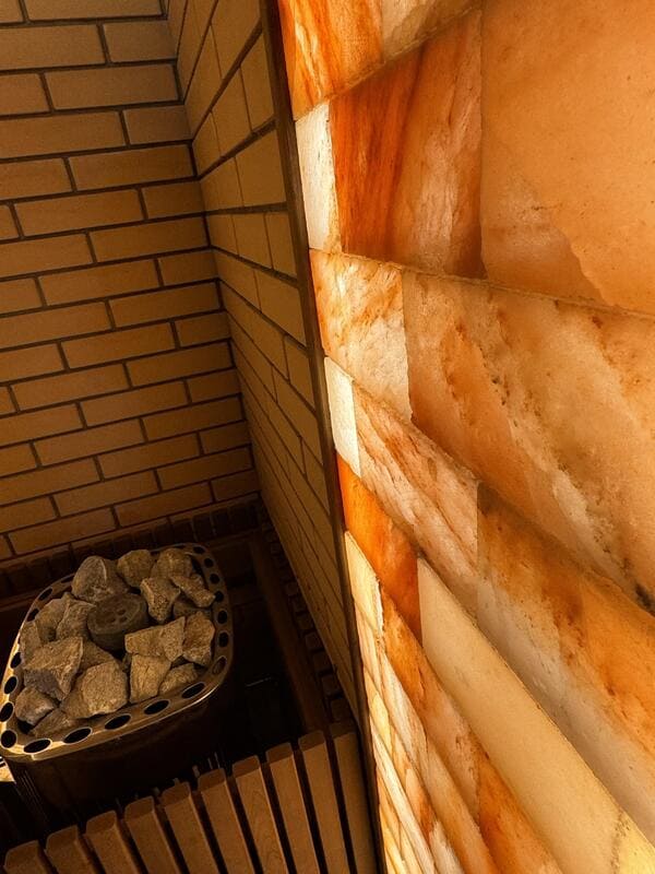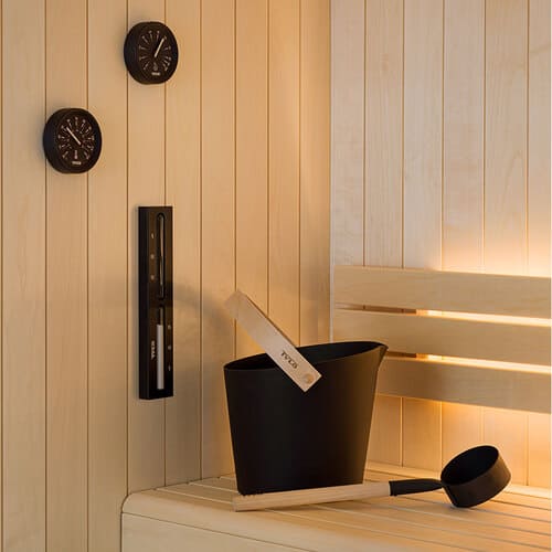 Оснащаем помещение термометрами-гигрометрами, панелями из можжевельника, плитами из гималайской соли и камнями для печи.