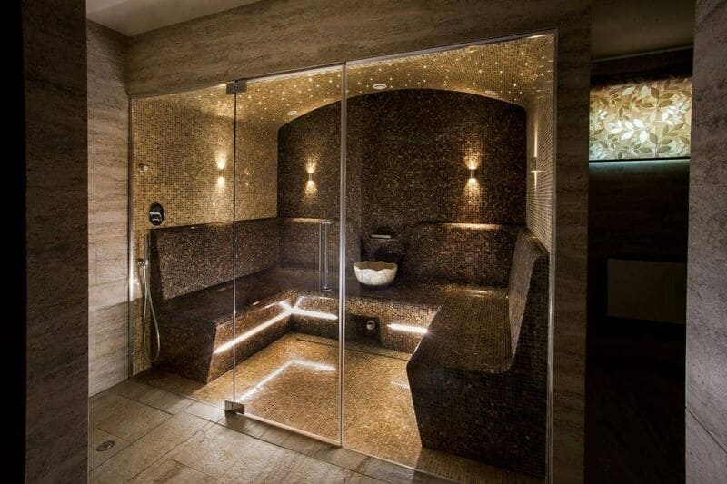 Керамическая мозаика, мрамор различных оттенков, травертин, оникс и уникальные узоры из натурального камня.
